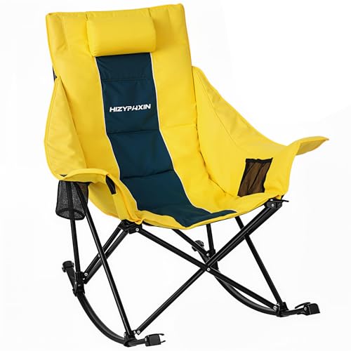 Hizypaixin Oversized Rocking Camping Chair for Adults with Headrest, Portable Rocking Chair with Cup Holder, Side Pocket & Carry Bag, 400 lbs Heavy Duty Outdoor Rocker Chair for Camp,
